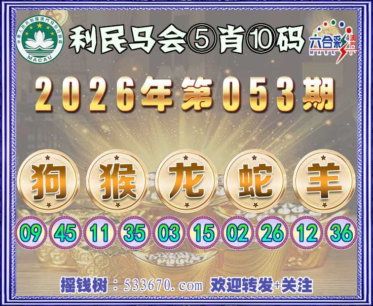 062期:利民马会【⑤肖⑩码】〓 发财之道