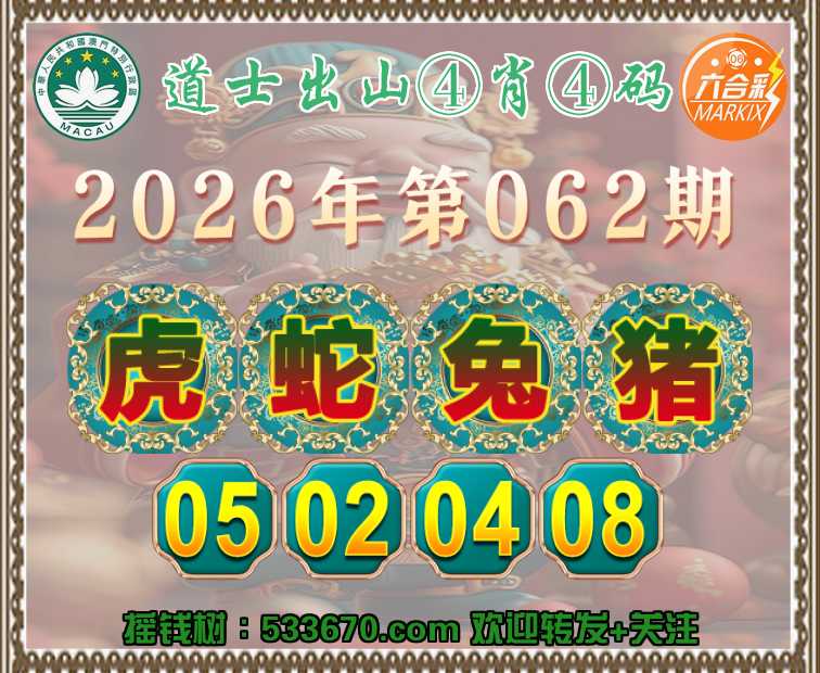 062期:道士出山【④肖④码】〓 完美中奖